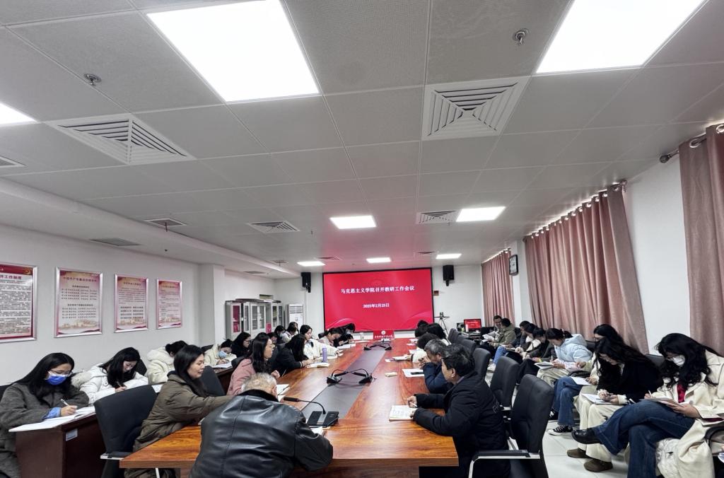 2025年2月25日下午14时30分,马克思主义学院在综合楼12楼会议室召开教研工作会议,院长徐金安、书记朱冰冰、副院长张西成、副院长魏华及马院全体教师参会。