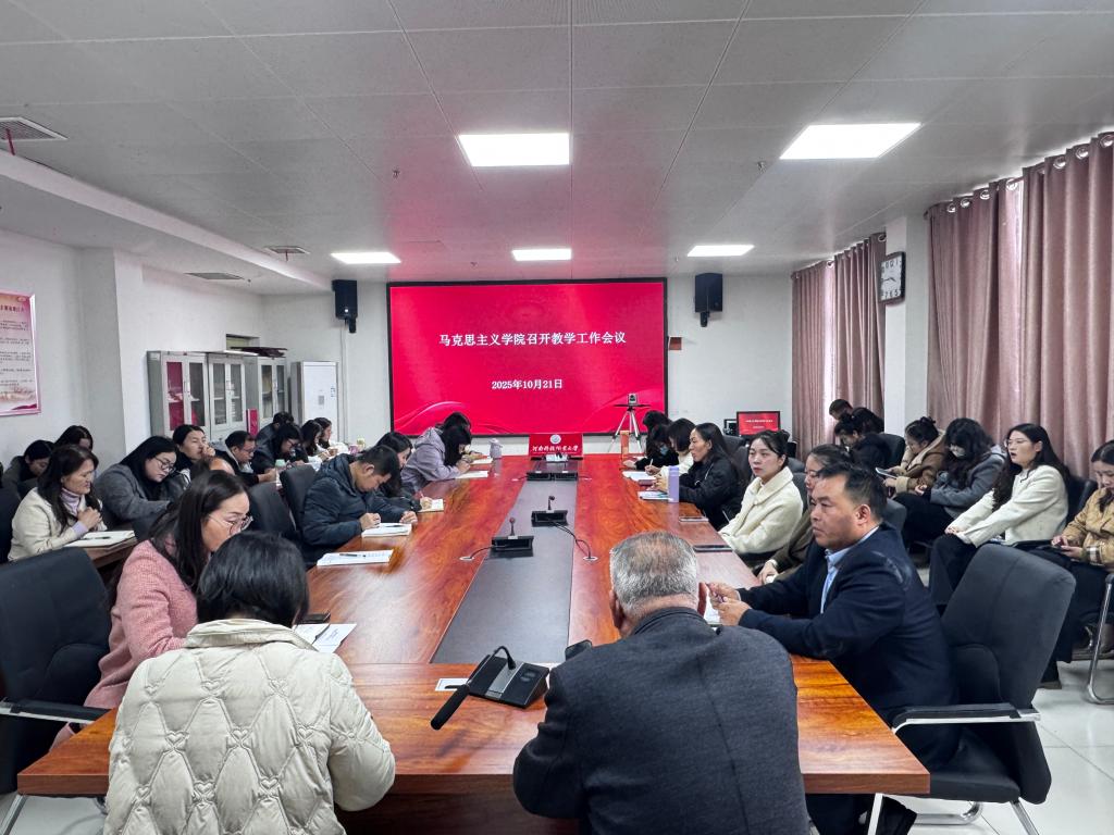 为持续深化思政课教学改革、筑牢育人主阵地,10月21日下午,马克思主义学院在综合楼12楼会议室组织全体教师召开教学工作专题会议。会议由党总支副书记宋广锋主持,院长徐金安,党总支书记孟丽平,副院长魏华及全体教师参加活动。