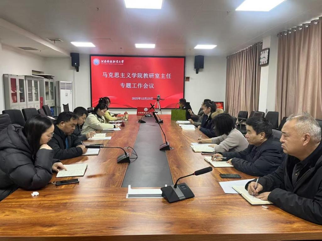 为统筹推进学期末教学收尾工作,规范教学管理流程,确保下学期教学工作有序开局,12月23日下午,马克思主义学院组织召开教研室主任专题工作会议。学院领导班子成员及各教研室主任参会。