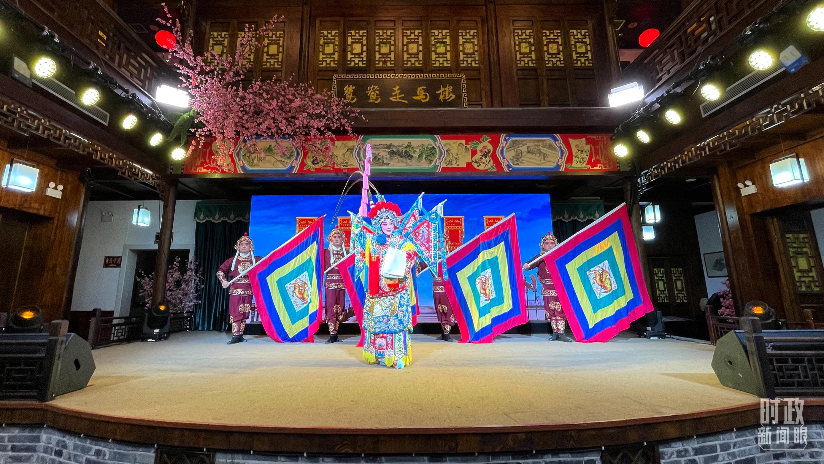 △常德河街,鸳鸯走马楼上演常德高腔《穆桂英挂帅》和澧水船工号子。(总台央视记者许永松、国广记者李晋拍摄)