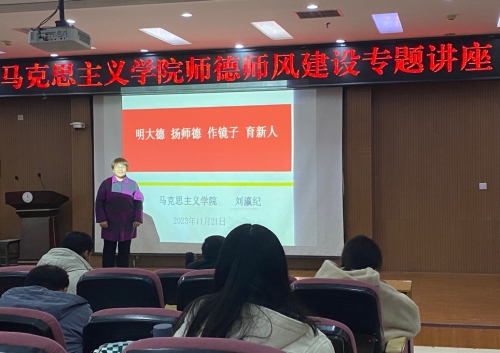 为认真学习贯彻党的二十大精神、深入学习习近平总书记关于教育的重要论述,弘扬教育家精神,全面提升师德师风建设水平,激励广大教师争做“四有”好老师,当好“四个引路人”,努力建设一支师德高尚、业务精湛、充满活力的高素质教师队伍。2023年11月28日下午,马克思主义学院院长刘瀛纪在综合楼西北一软座教室作“明大德 扬师德 作镜子 育新人”的专题讲座,讲座由学院副院长张西成主持,全体教职工参加。