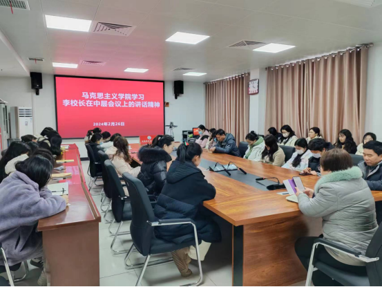 瑞雪迎春,万象更新,度过愉快且充实的春节,新学期伊始,为迎接学生返校,上好开学第一课,2024年2月26日下午,马克思主义学院在综合楼十二楼会议室召开第二次新学期工作会议。本次会议的主要议程是学习李校长在中层干部会议上的讲话精神,使科研与教学深度融合,提升教学质量与水平。李校长要求全体教职员工以饱满的工作热情和良好的精神状态投入工作。