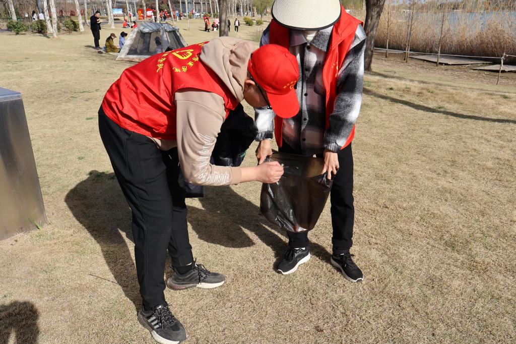 马克思主义学院与青马社团师生到达周口市植物园后,即刻投入到学雷锋志愿服务中去,师生携手捡拾白色垃圾、美化生态环境,帮助老弱幼小、温暖社会人心。在服务实践中,全体师生团结协作,挥洒汗水,在每一寸绿色草地上,在每一个微笑目光里,陶冶了情操,体会到了奉献与爱的力量,进一步强化了自身的道德素养,向社会传递了满满的正能量。