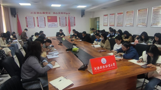 大会开始,党支部书记朱冰冰就党建和科研工作提出了几点要求:第一,对运动会报名情况做了一个大致的梳理,交代啦啦队要做好后勤服务;第二,本月要开展有助于学生成长的活动,各位老师要积极与学生互动交流。第三,按照校党委宣传部下发的文件要求,认真做好教育家精神、师德师风等专题学习笔记;第四,做好科研工作,注意时间节点,鼓励大家勇于申报各项课题项目。