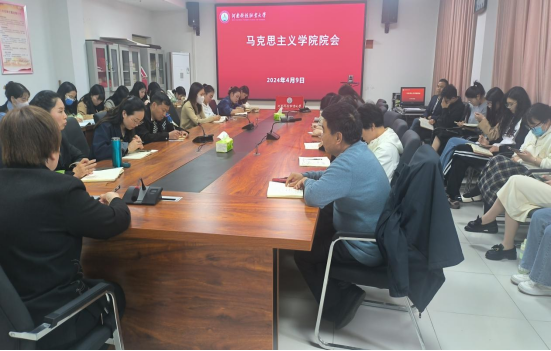 2024年4月9日15:00,马克思主义学院在综合楼12楼会议室召开全体教师大会。院长刘瀛纪、副院长张西成及全体教职工参会,会议由院长刘瀛纪主持,共有四项议程。