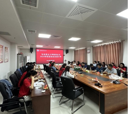 2024年4月28日上午,马克思主义学院在综合楼12楼会议室召开2024年校运动会总结分享会。校组织部长门立志,校工会副主席赵凯和马院全体教师参加会议。