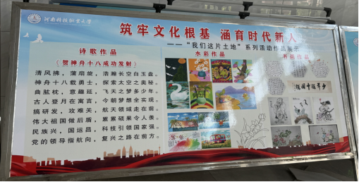 本次展板共分为三个板块。第一板块记录了马院教师坚守初心,坚持“马院姓马,在马言马”的鲜明导向和办学原则,把“提升质量、注重效果”当作立院之本,坚持活动育人,将思政课堂立体化、生活化,融入学生日常,以无时不在、无刻不有的思政教育,促进学生学、思、践、悟、行系统转化,让思想政治教育真正走进学生的心灵,完成凝心铸魂育新人的时代使命。第二板块展示了马院在校党委和校委会领导下,通过举办专题讲座,师生互动、社会实践、志愿者服务、红色教学基地现场教学、文体活动等学生们喜闻乐见的形式,将思政内容融入其中,营造了“处处是课堂,时时受教育”的浓厚氛围。第三板块展示了“我们这片土地”系列活动中,部分师生的诗歌、水彩和书画作品等,充分彰显了思想政治教育活力。