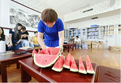 刘院长随后带领全院教师进行庆祝端午活动,以分享西瓜、香蕉等来纪念我们这一节日,希望马院全体教师通过此次主题活动能够积极弘扬中华民族优秀传统文化、增进情感交流、传递党的温暖和祝福、了解健康知识、继承传统习俗、营造节日氛围、传承爱国主义情怀、品味传统文化气息。