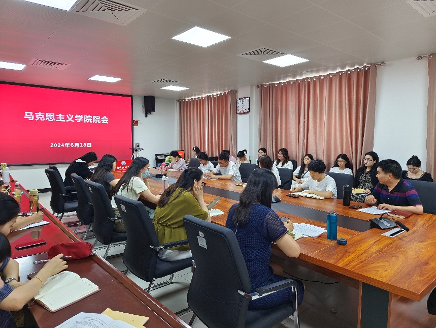 6月18日下午,马克思主义学院在综合楼12楼会议室召开全体教师会议,本次会议由马克思主义学院院长刘瀛纪主持,会议共分三部分内容。