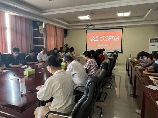 9月3日下午3点30分,马克思主义学院在综合楼9楼会议室召开全体教师会议,院长徐金安、书记朱冰冰及全体马院教师参会,会议由院副院长张西成主持。