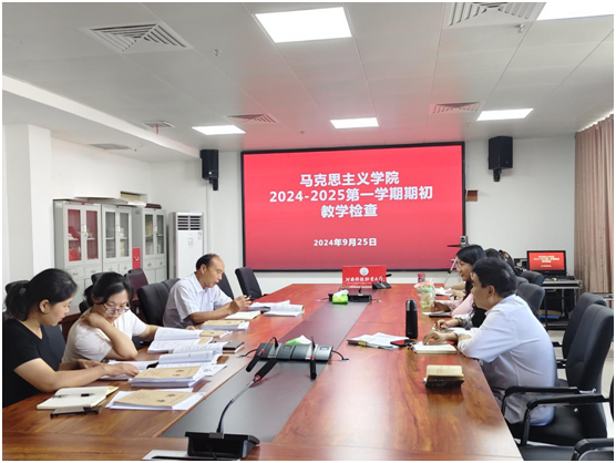 为深入了解新学期马克思主义学院教学运行状况,全面了解教学工作的准备情况,持续深化教学改革,加大日常教学质量监控力度,强化教学管理。2024年9月25日下午,许德宽校长带领学校教务处部分老师到马克思主义学院进行期初教学检查工作。