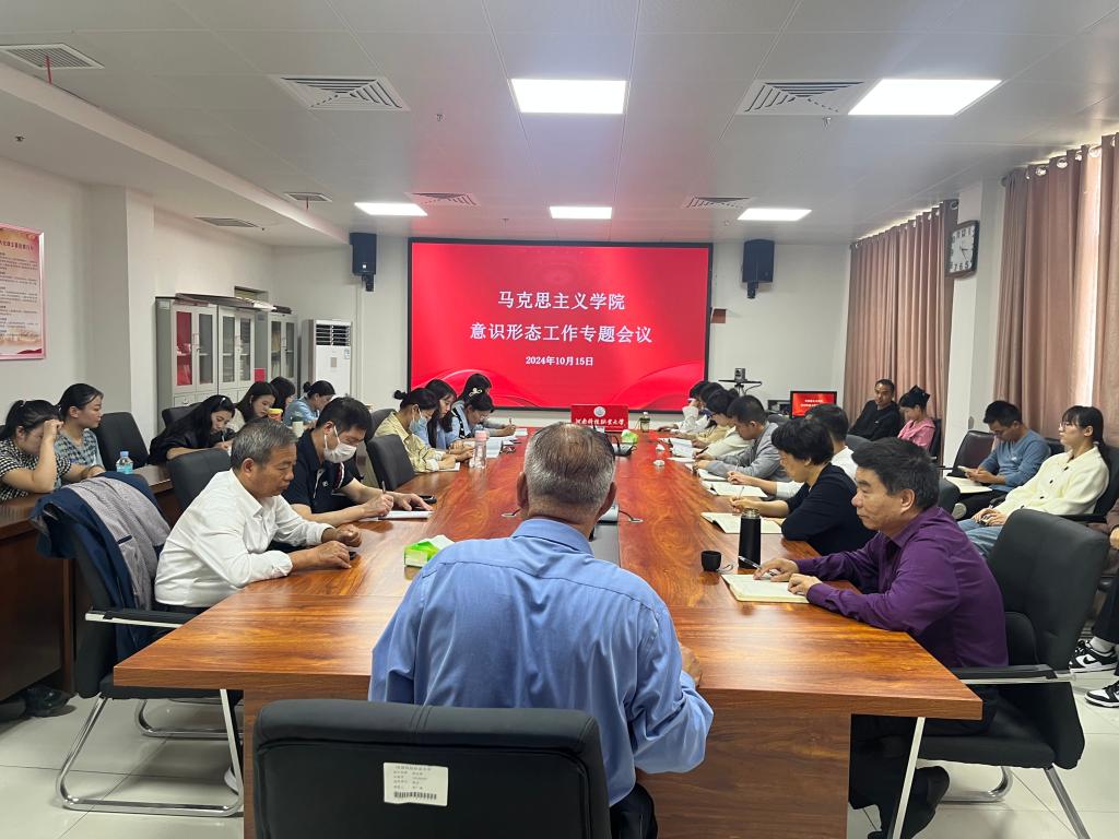 10月15日下午,马克思主义学院在综合楼12楼会议室召开意识形态专题工作会议,院长徐金安、副院长张西成及马院全体教师参会,此次会议由院长徐金安主持。