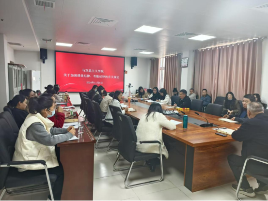 2024年11月5日下午4时,马克思主义学院在综合楼12楼会议室开展关于,加强课堂纪律、考勤纪律的会议,院长徐金安、书记朱冰冰及马院全体教师参与学习,由张西成副院长主持。