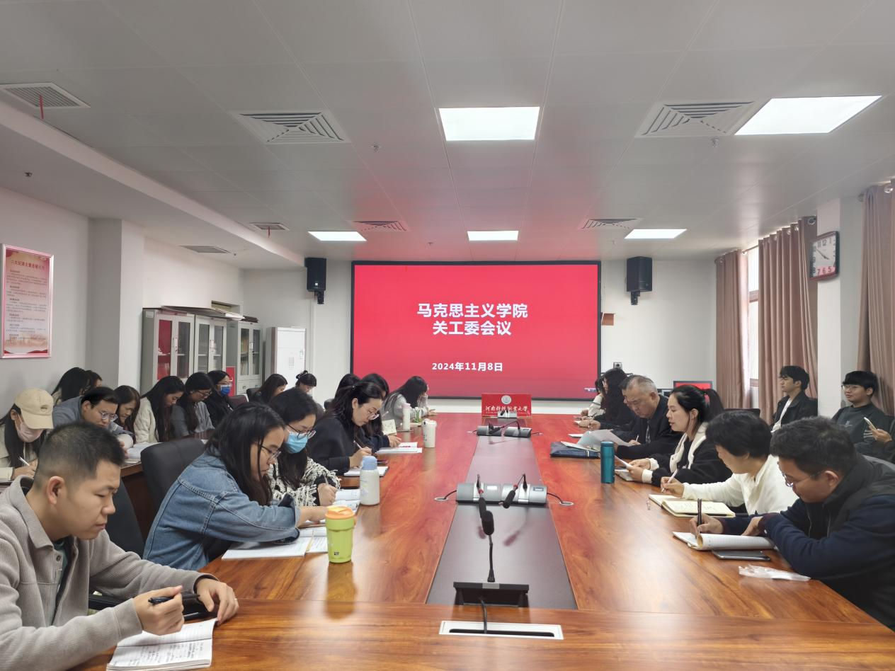 2024年11月8日下午4时,马克思主义学院在综合楼12楼会议室隆重召开了关工委(关心下一代工作委员会)会议。本次会议院长徐金安、书记朱冰冰、全体教师以及学院社团成员参加,副院长张西成主持,共同探讨青少年成长与发展的话题。