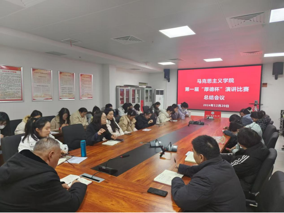 2024年12月20上午九点马克思主义学院在综合楼12楼会议室召开了厚德杯演讲比赛的复盘工作会议,马院全体教师参会。