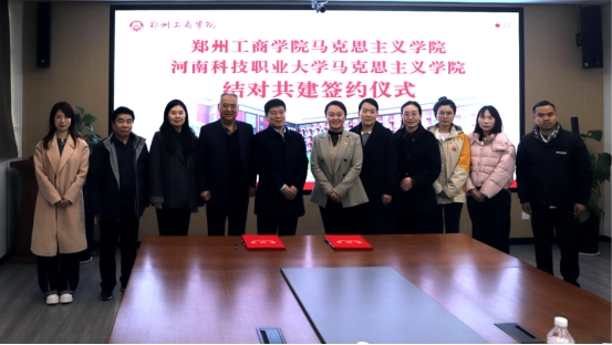 为深入学习贯彻习近平总书记关于思政课建设的重要指示精神,全面落实河南省教育工委、省教育厅着力推进全省思政课内涵建设的重要部署,2025年2月27日下午3时,我校马克思主义学院与郑州工商学院马克思主义学院结对共建签约仪式顺利举行。