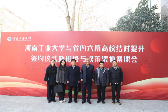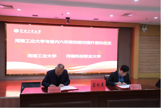 为深入贯彻习近平总书记关于思政课建设的重要指示批示和党的二十届三中全会精神,充分发挥重点、示范性马克思主义学院的示范引领和辐射带动作用,根据省委宣传部、省委教育工委、省教育厅《关于印发<河南省高校马克思主义学院结对提升工作方案>的通知》的要求,进一步推进马克思主义学院发展和思政课教学改革建设,2025年2月27日上午,河南科技职业大学与河南工业大学开展马克思主义学院结对共建签约仪式在河南工业大学大礼堂举行。校党委副书记夏永亮,马克思主义学院院长徐金安、党总支书记朱冰冰、副院长张西成、副院长魏华、办公室主任冯春光出席签约仪式。