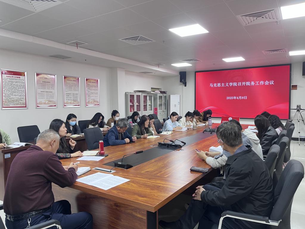 2025年4月8日15时30分,马克思主义学院院务工作会议在综合楼12楼会议室顺利召开。马克思主义学院院长徐金安、党总支书记朱冰冰及全体教师参会,聚焦学院发展关键议题展开深入研讨。
