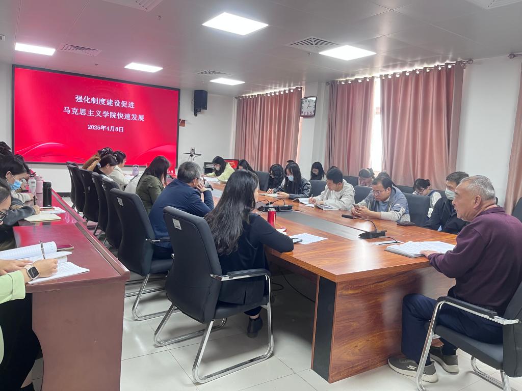 党总支书记朱冰冰深度剖析当前形势,点明制度建设对于学院发展的“四梁八柱”作用。她指出,在思政课教学面临多元思潮冲击、学生需求日益多样、科研竞争愈发激烈的当下,完善的制度体系是保障教学精准育人、科研创新突破、师资队伍稳健成长的关键密钥,唯有筑牢制度根基,才能在发展的快车道上稳步疾驰。