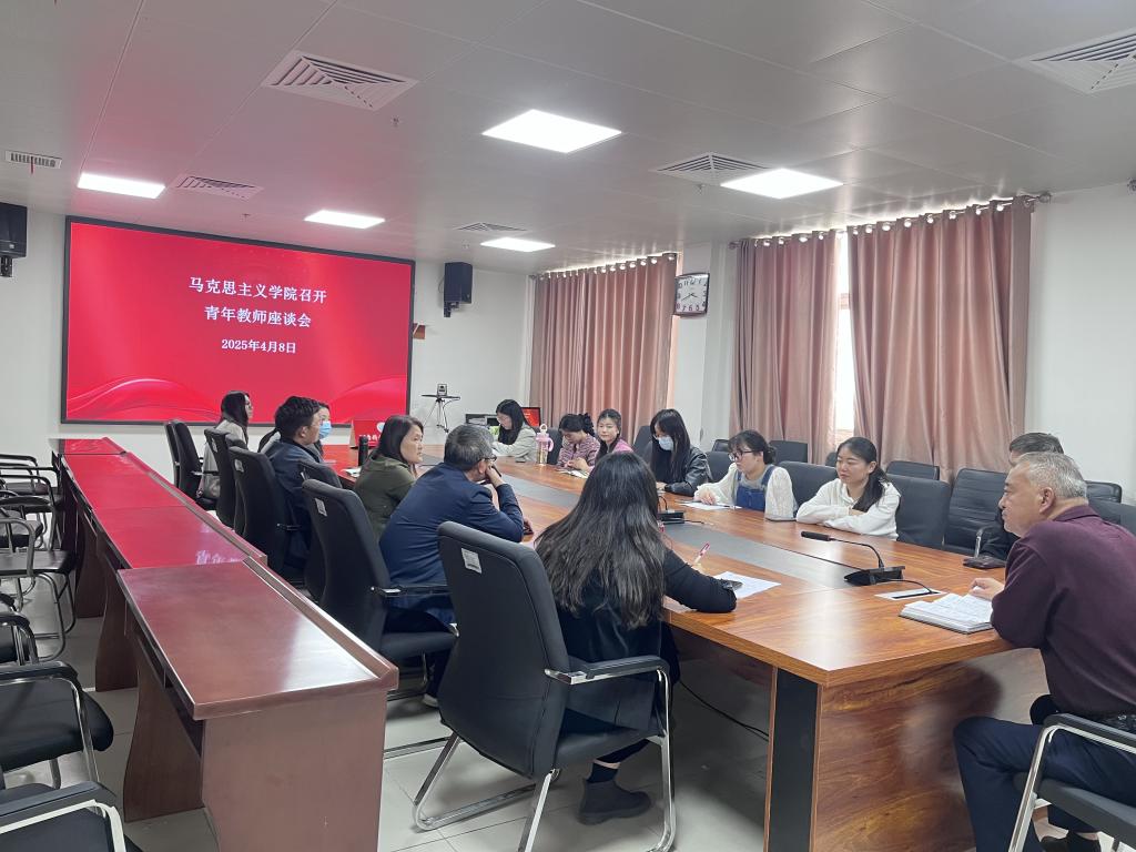 2025年4月8日17时,为深入贯彻落实习近平总书记关于思政课建设的重要指示精神,加强马克思主义学院师资队伍建设,提升思政教育教学质量,河南科技职业大学马克思主义学院召开青年教师座谈会。学院领导、资深教授与青年教师齐聚一堂,围绕教学、科研、职业发展等话题展开深入交流,为学院发展与思政育人工作注入新动力。