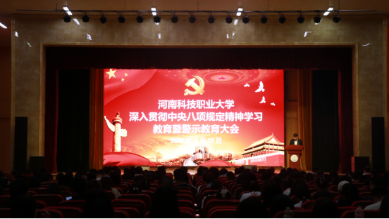 2025年4月22日下午15时,马克思主义学院全体教师在图书馆3楼报告厅参加“河南科技职业大学深入贯彻中央八项规定精神学习教育暨警示教育大会”。