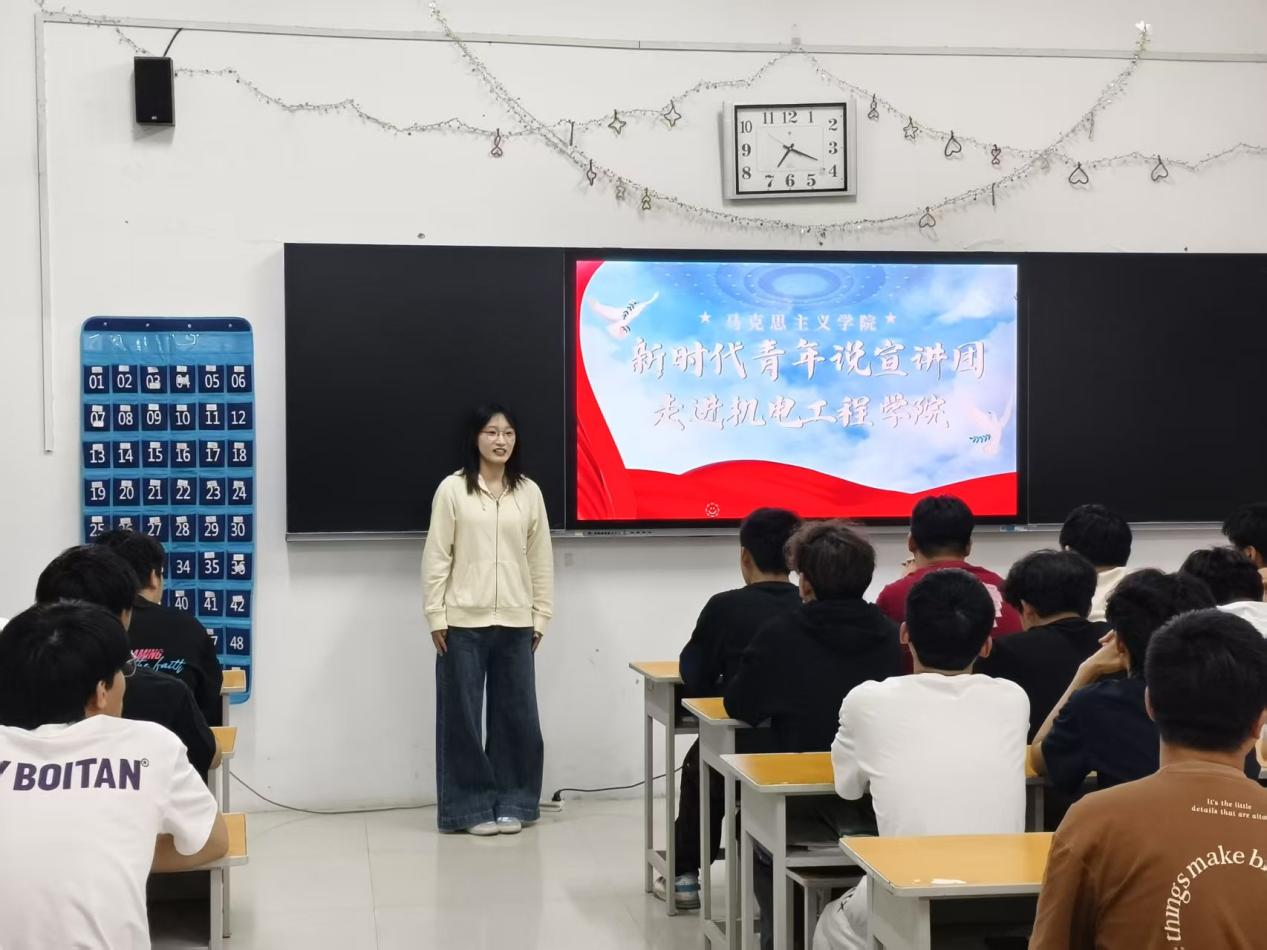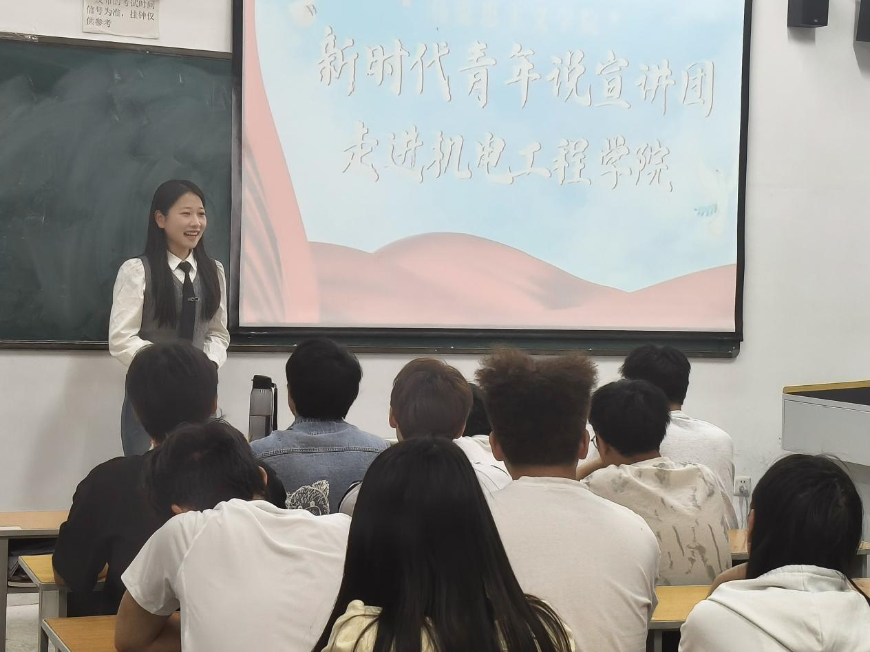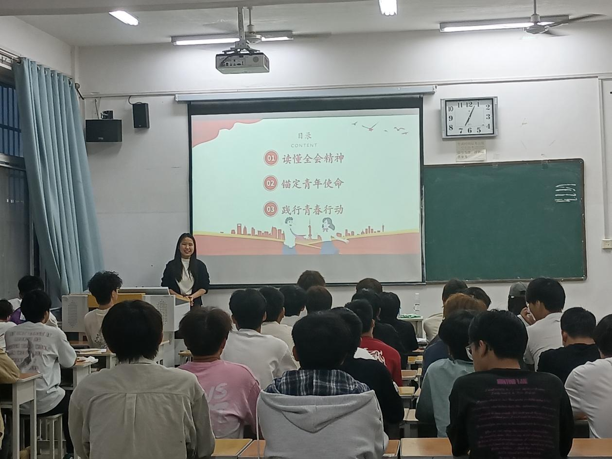 为深入学习贯彻党的二十届三中全会精神,2025年4月25日19时至20时30分,河南科技职业大学马克思主义学院“新时代青年说”宣讲团走进机电工程学院,于敏行楼面向2024级大一学生开展"学习贯彻二十届三中全会"主题宣讲活动。马克思主义学院指导老师赵靓慧彦带领宣讲团成员及后勤保障人员46人参与活动,覆盖机电工程学院16个班级,累计完成宣讲32场次,现场收集反馈问卷300余份。