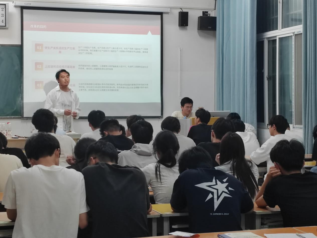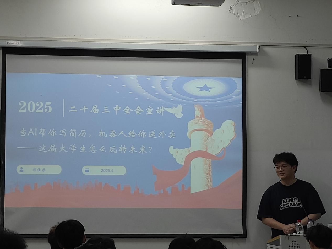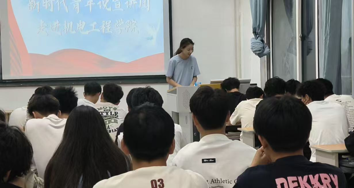 为深入学习贯彻党的二十届三中全会精神,2025年4月25日19时至20时30分,河南科技职业大学马克思主义学院“新时代青年说”宣讲团走进机电工程学院,于敏行楼面向2024级大一学生开展"学习贯彻二十届三中全会"主题宣讲活动。马克思主义学院指导老师赵靓慧彦带领宣讲团成员及后勤保障人员46人参与活动,覆盖机电工程学院16个班级,累计完成宣讲32场次,现场收集反馈问卷300余份。