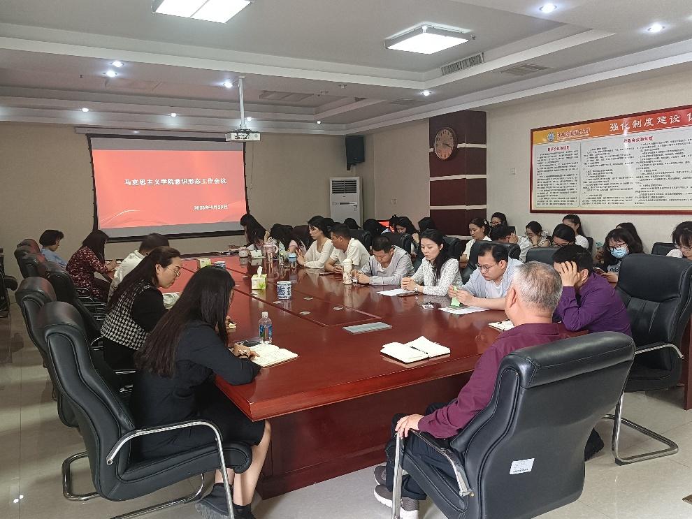 为进一步加强意识形态工作,筑牢思想阵地,2025年4月29日15时20分,马克思主义学院在综合楼9楼会议室召开意识形态工作会议,院长徐金安、党总支书记朱冰冰、副院长张西成、副院长魏华及全体教师参加会议。