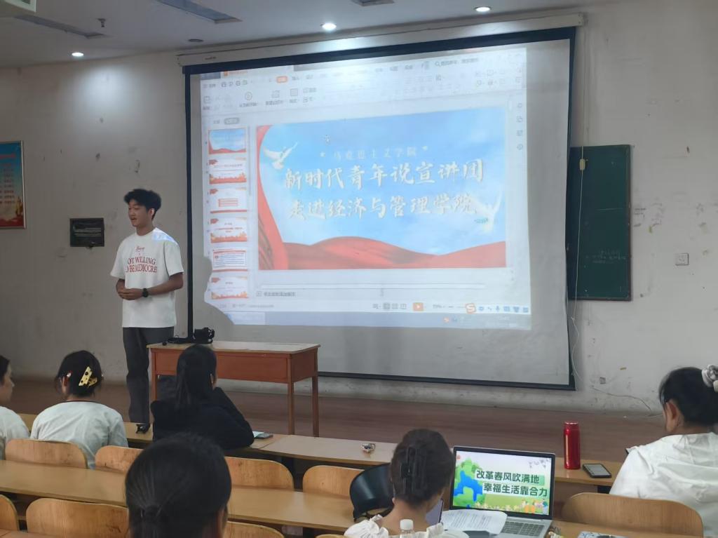 5月27日下午4时,马克思主义学院"新时代青年说"宣讲团在综合楼东北一教室开展模拟宣讲活动,学院党总支书记朱冰冰全程参与并给予针对性指导。这是学院深化理论学习、创新思政教育形式的重要举措。