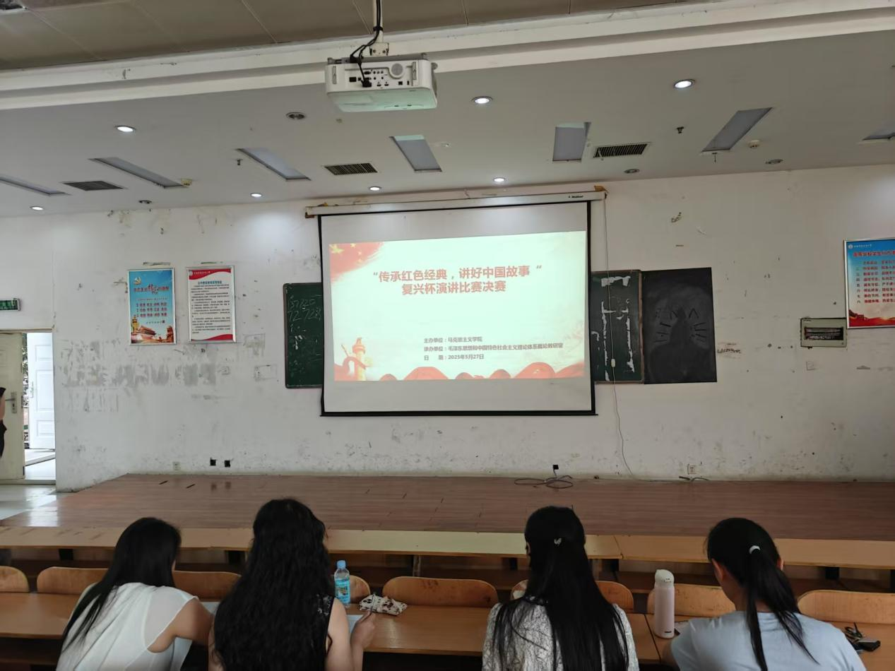 2025年5月27日下午3点,河南科技职业马克思主义学院在综合楼东北一阶梯教室成功举办毛泽东思想和中国特色社会主义理论体系概论课“复兴杯”演讲比赛决赛。本次活动以“传承红色经典,讲好中国故事”为主题,吸引了全校30多名选手参与初赛,最终10名选手晋级决赛。学院党总支书记朱冰冰,副院长魏华,教研室主任王寒霜以及全体概论课教师参与了此次活动。