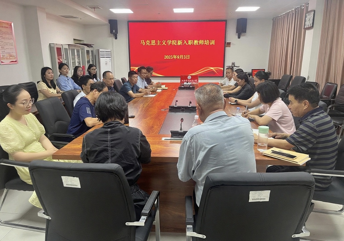 为使我院新入职教师更好地熟悉工作要求和岗位工作特点,提升教育教学能力,马克思主义学院于2025年9月3日下午在学校综合楼12楼会议室举办新入职教师培训,学院院长徐金安、学院党支部书记孟丽平、学院副院长魏华、教务办主任魏璨及全体新入职教师参加培训会,会议由学院副院长张西成主持。