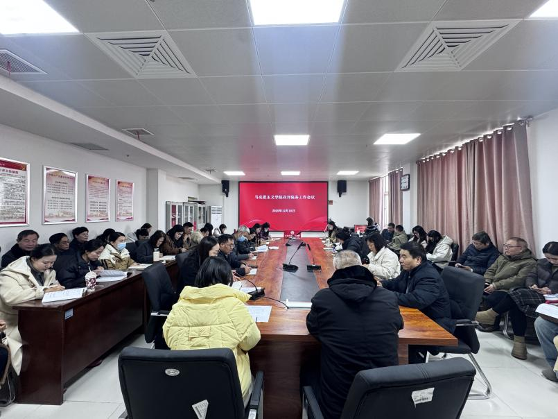 2025年12月16日下午,河南科技职业大学马克思主义学院在综合楼12楼会议室召开院务工作会议,全面总结近期工作,分析当前形势,研究部署下一阶段重点任务。院长徐金安,党总支书记孟丽平,副院长魏华及全体教师共同参与。会议由学院副院长张西成主持。