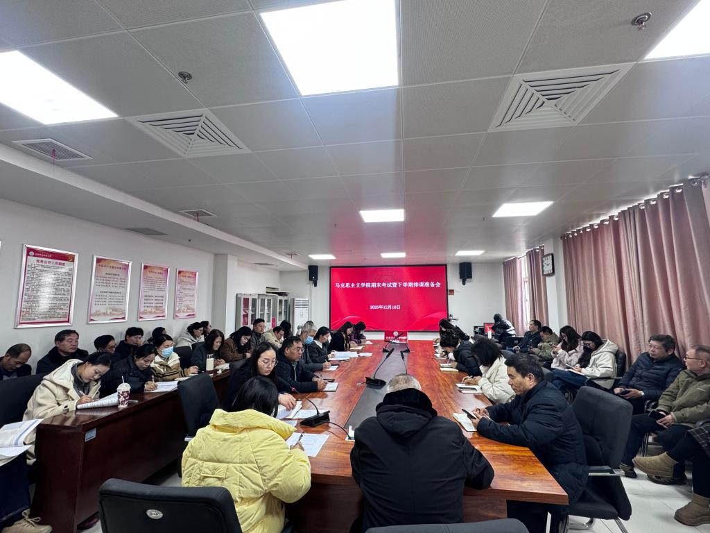 为有序推进学期末各项教学任务,提前谋划新学期教学工作,12月16日下午,河南科技职业大学马克思主义学院在12楼会议室召开专题工作会议,重点部署本学期期末考试组织与下学期教学排课准备工作。此次会议由副院长张西成主持,院长徐金安,党总支书记孟丽平,副院长魏华及全体教师共同参与。