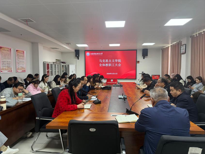 为进一步规范教学管理、提升育人质量、推动学院各项工作提质增效,2026年3月31日,马克思主义学院在综合楼12楼会议室召开全体教职工会议。马克思主义学院院长徐金安、党总支副书记宋广锋、副院长张西成、魏华及全体老师参会。会议由副院长张西成主持。