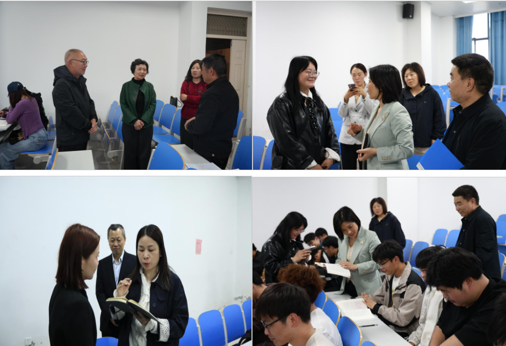 调研组一行采取随机抽取、推门听课的方式,深入教学一线课堂,听取了我院赵亚、赵靓慧彦、杜倩三位老师讲授的《习近平新时代中国特色社会主义思想概论》《中国近现代史纲要》和《毛泽东思想和中国特色社会主义理论体系概论》三门课程。专家们全程认真记录课堂教学环节、内容组织、方法运用及师生互动情况,课后与授课教师逐一开展面对面交流反馈,既充分肯定我校思政课教师扎实的教学功底、鲜明的教学特色与良好的课堂效果,也从教学内容深度、理论阐释精度、案例选择适配度、互动设计创新性等方面提出精准的改进建议。
