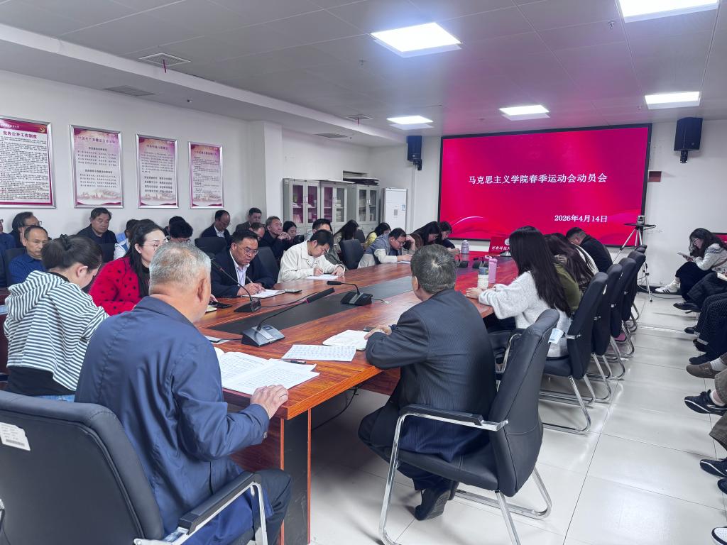 4月14日下午,马克思主义学院在综合楼12楼会议室召开春季运动会动员会,学院领导及全体参赛教师参会。